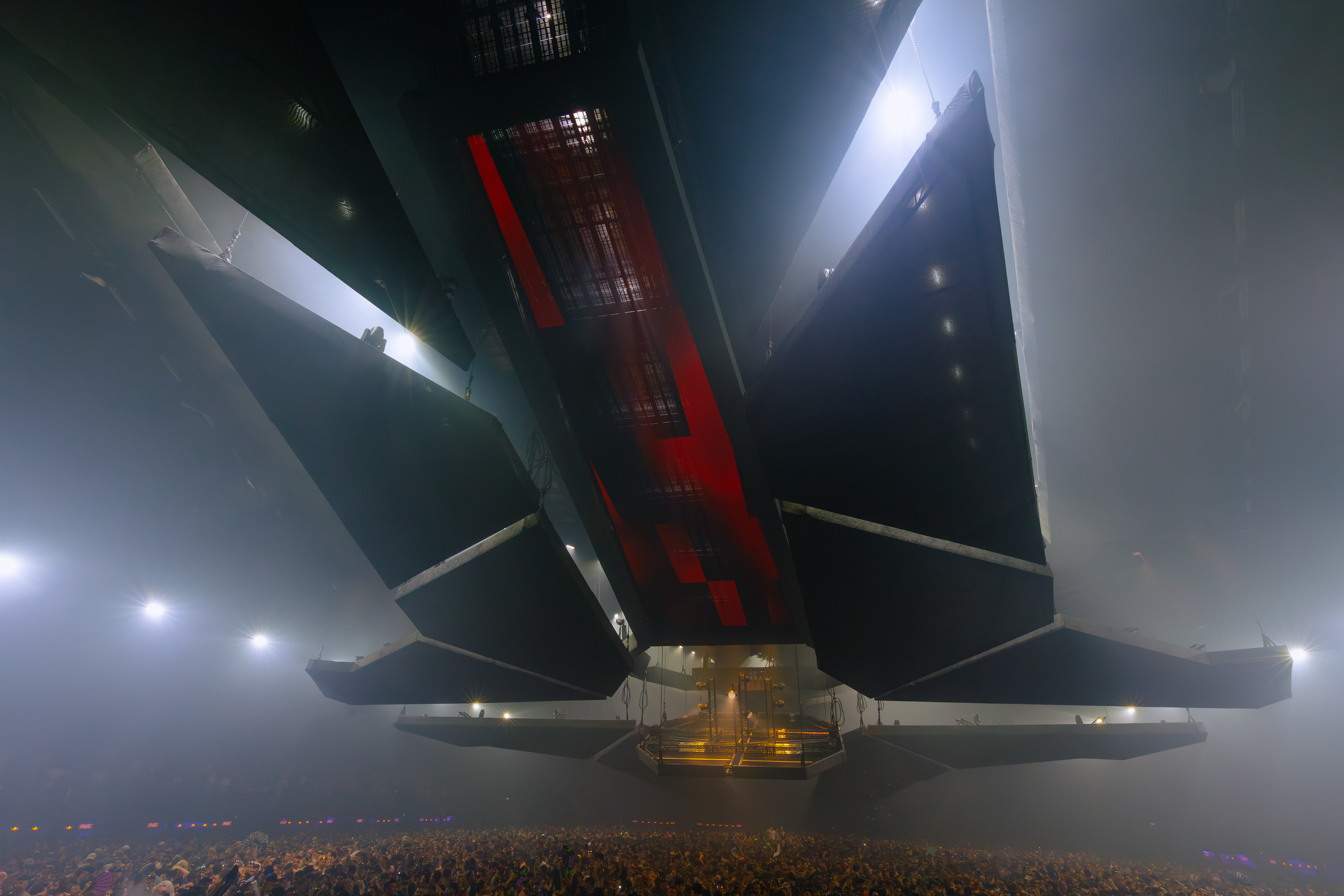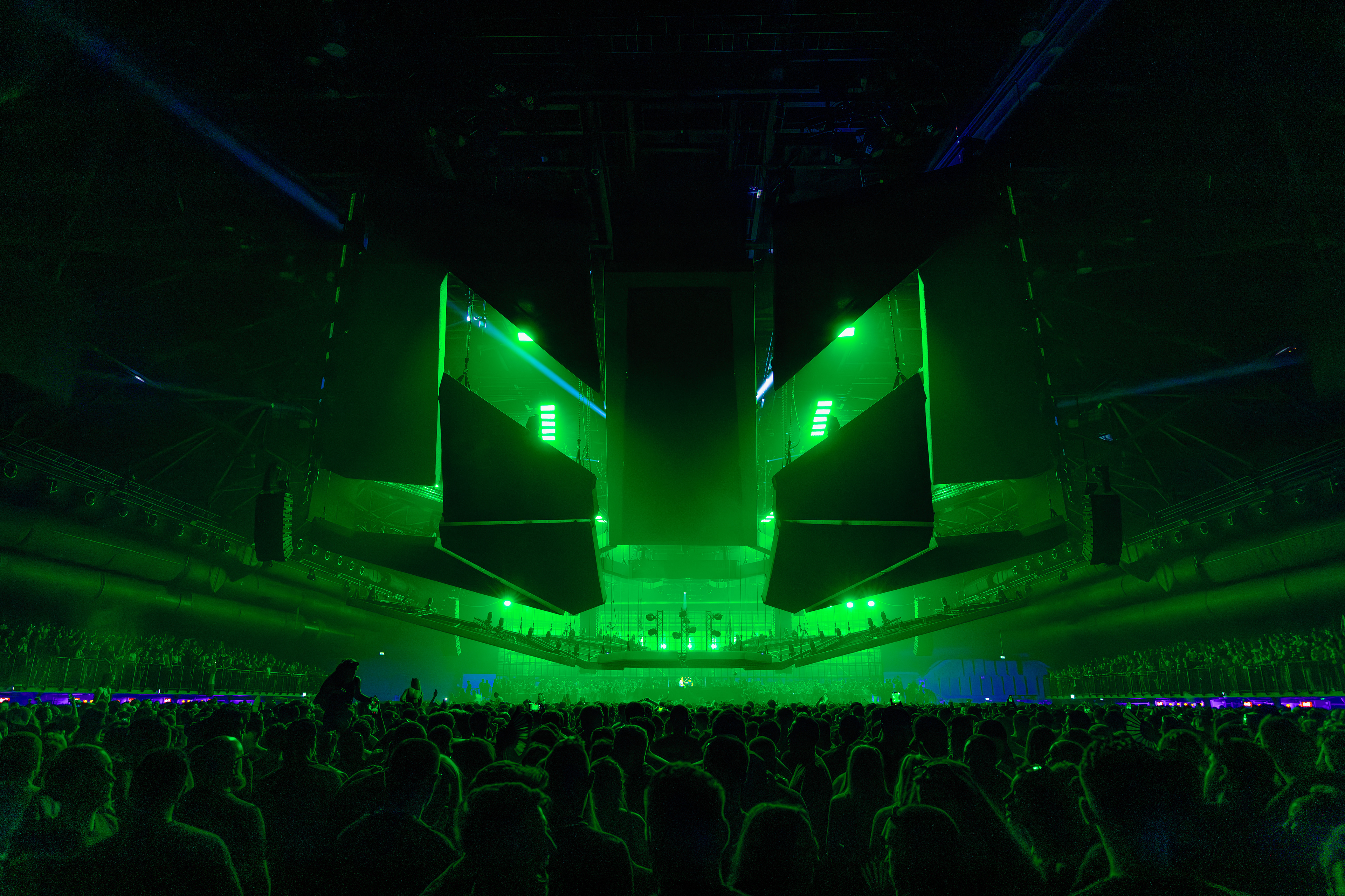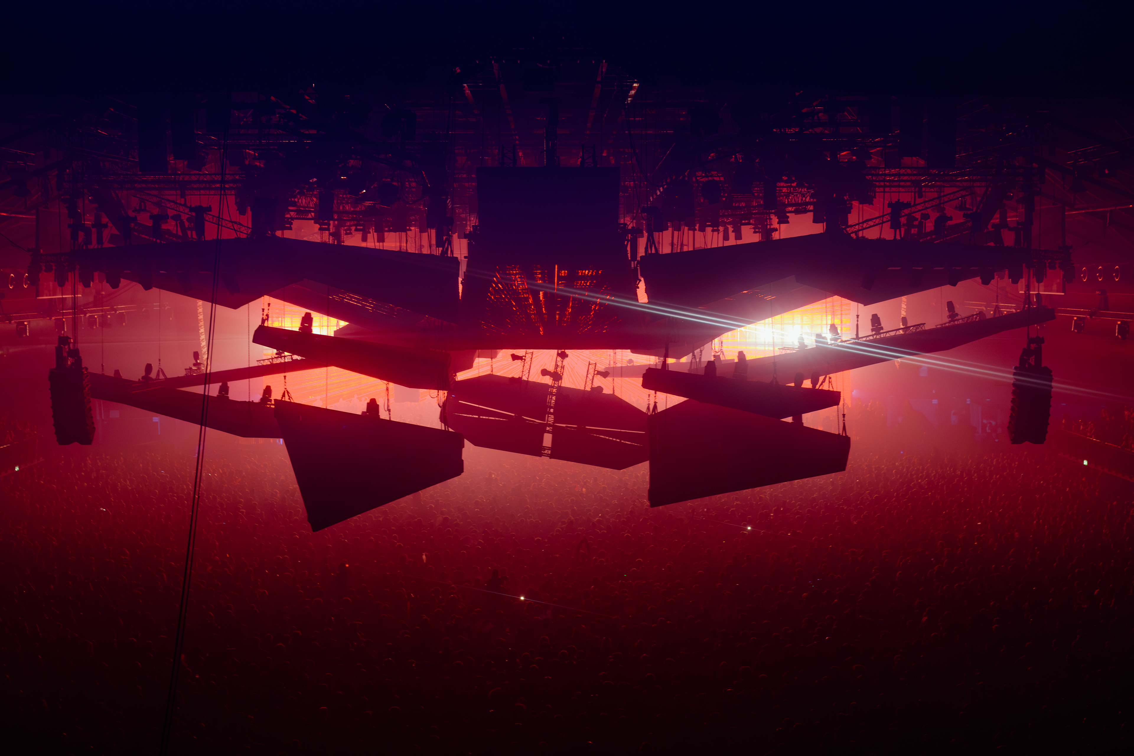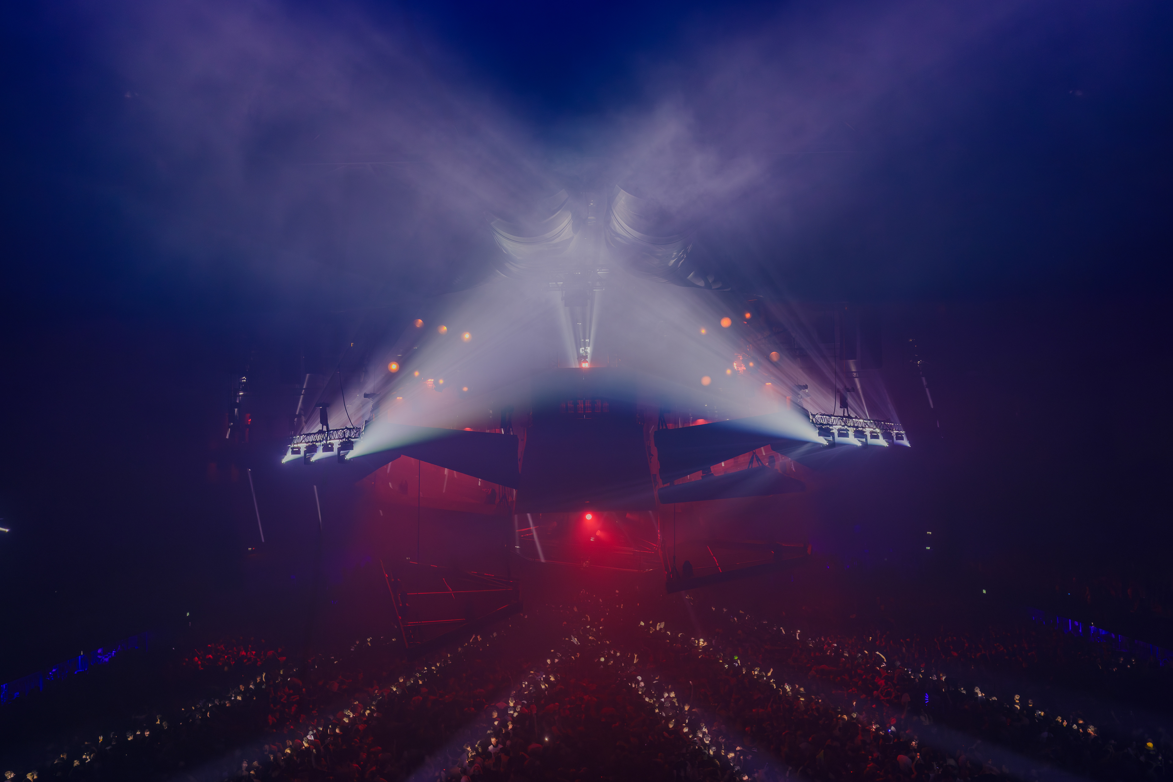 Photoshoot for Sila Sveta, one of the leading specialists in lighting design and event production, at the Rave Rebels event held in autumn 2025 at ING Arena, Brussels, Belgium. Focus on the show’s dynamics, atmosphere, and the visual impact of the lighting design